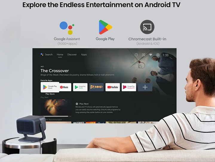 Phiên bản của chúng tôi là máy chiếu JMGO N1 Ultra quốc tế có tìm kiếm giọng nói tiếng và kho Google Play tải hàng 10.000 ứng dụng. JMGO N1 Ultra có kích thước chiếu tối ưu là 100-150 inch, “khoảng cách xem” được khuyến nghị là từ 2,5 m đến 4 m. Tối đa kích thước trình chiếu 300 inch.